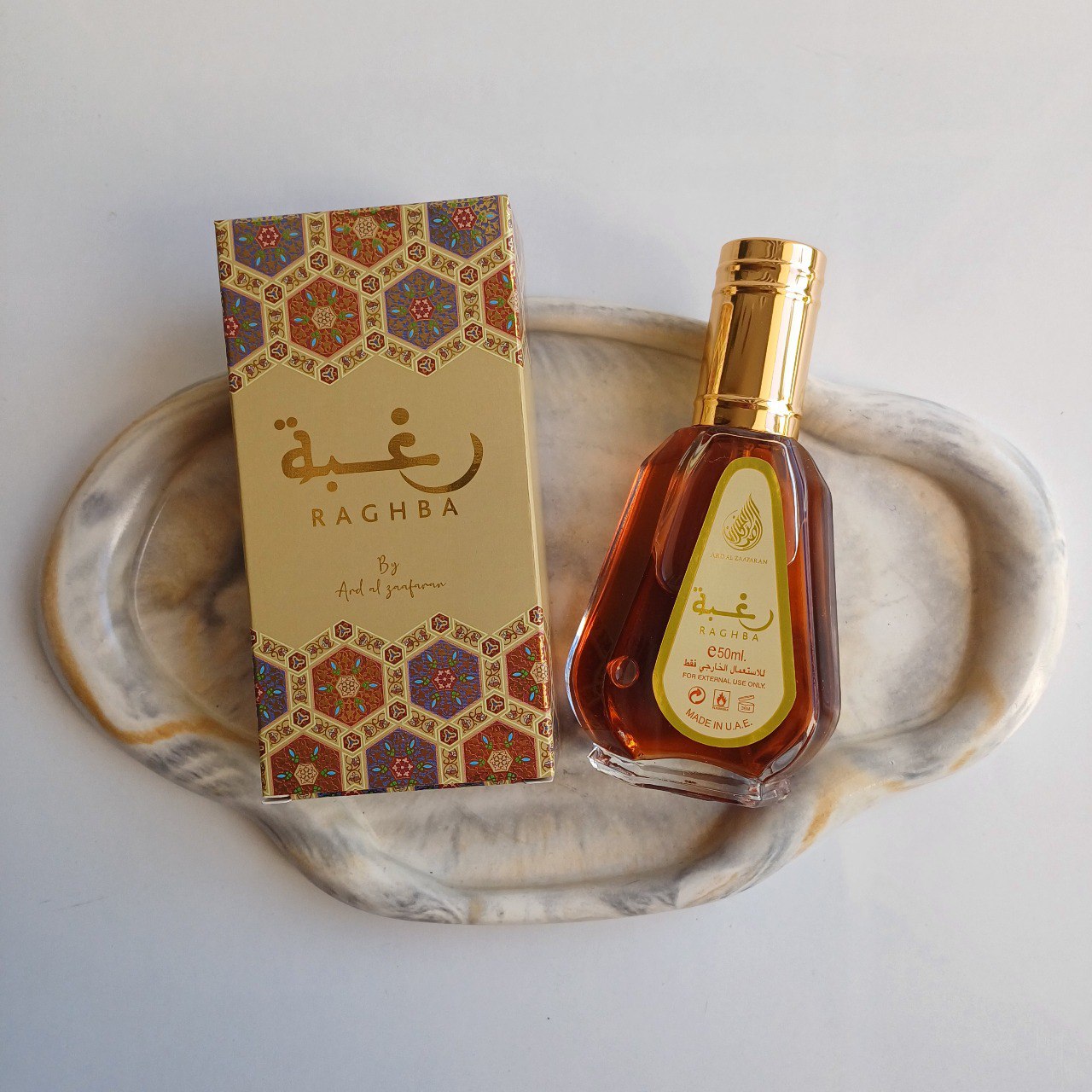 خانه ادکلن اماراتی عطر ادکلن رغبه برند ارض الزعفران ۵۰ میل
